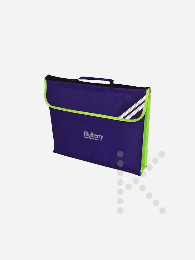 Official Mulberry Wood Wharf primary bookbag.