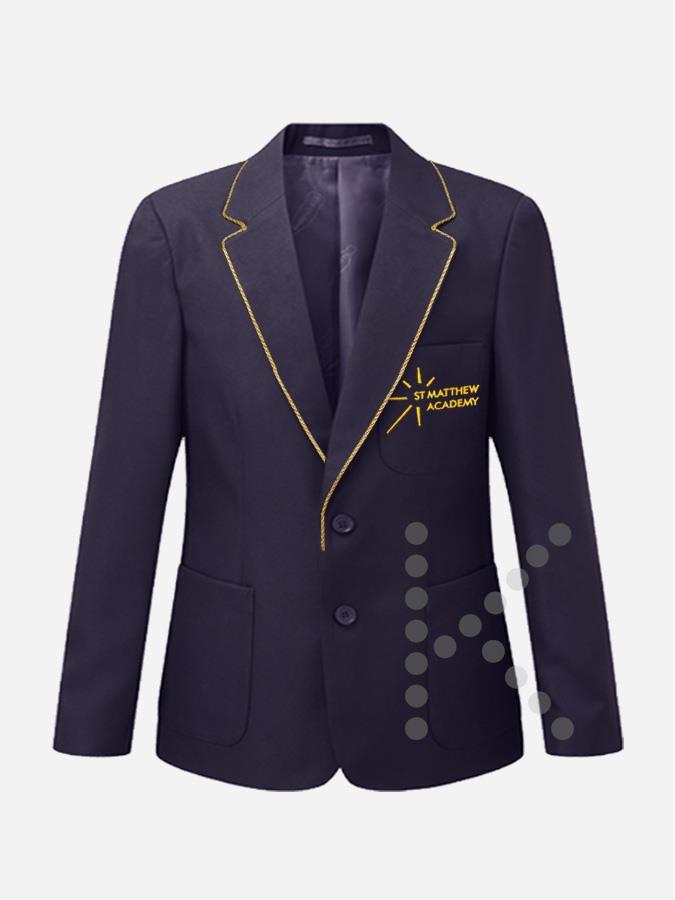 Our boys eco-blazer uses the best materials to construct this blazer - so no snagging shoulders here. Outer fabric has been made from 100% stain resistant polyester which has been recycled from plastic bottles. Featuring side vents and cloth jetted inside pockets, finished with an I.D. pocket, contrast lining and striped sleeve lining. Altogether, this translates to a blazer which is durable, practical and of the highest standard.