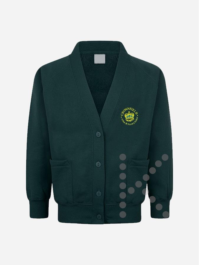 Official Crownfield Infant & Nursery School sweatshirt cardigan.