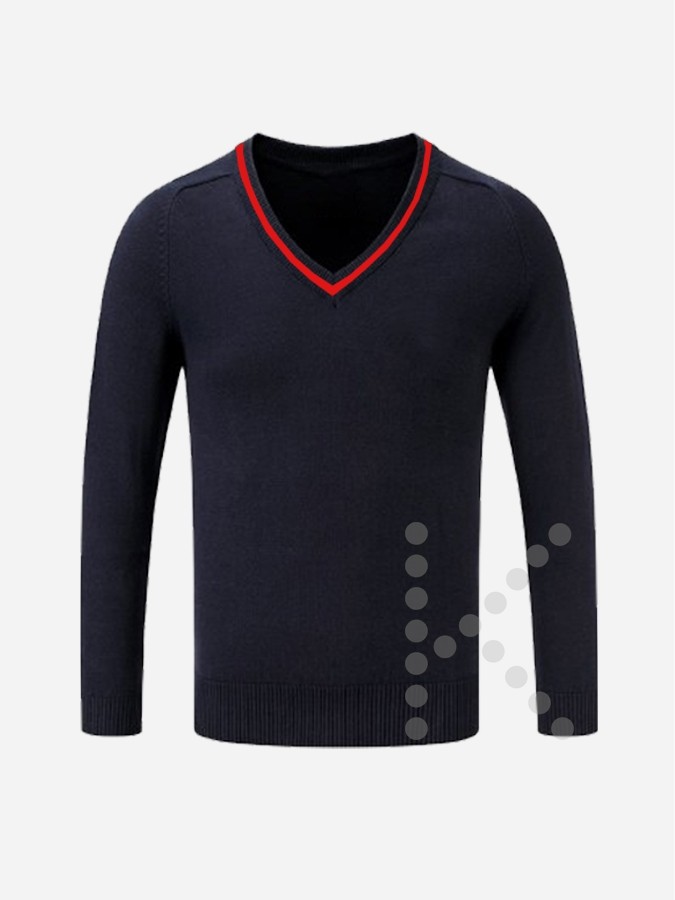 Official St Ursula's Convent jumper with a red stripe.