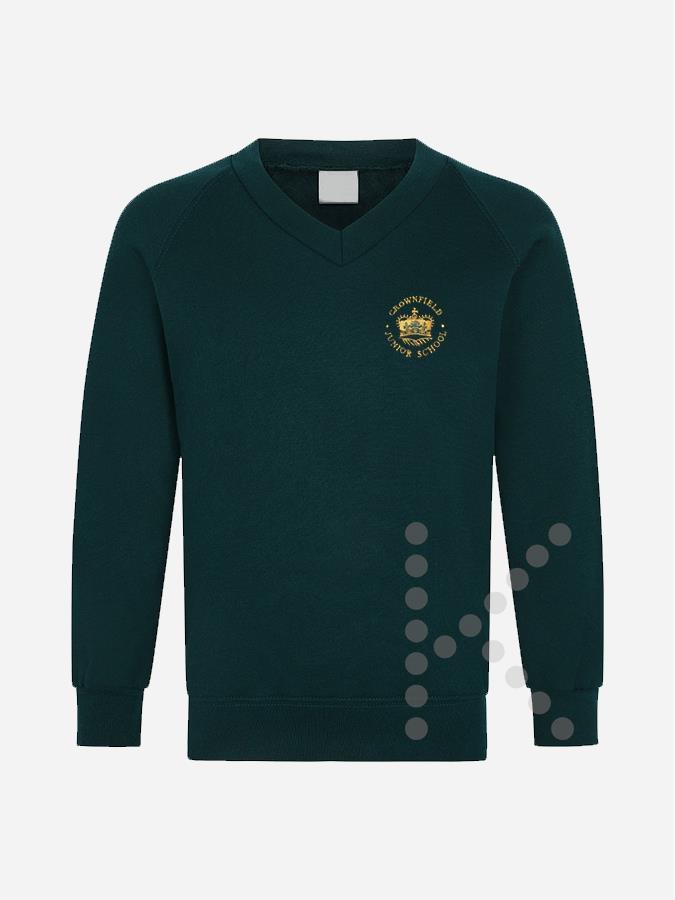 Official Crownfield Junior School V neck sweatshirt jumper.