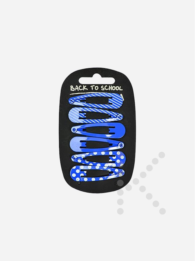 Snap fastening hair grips with colourful enamel finish in royal blue.