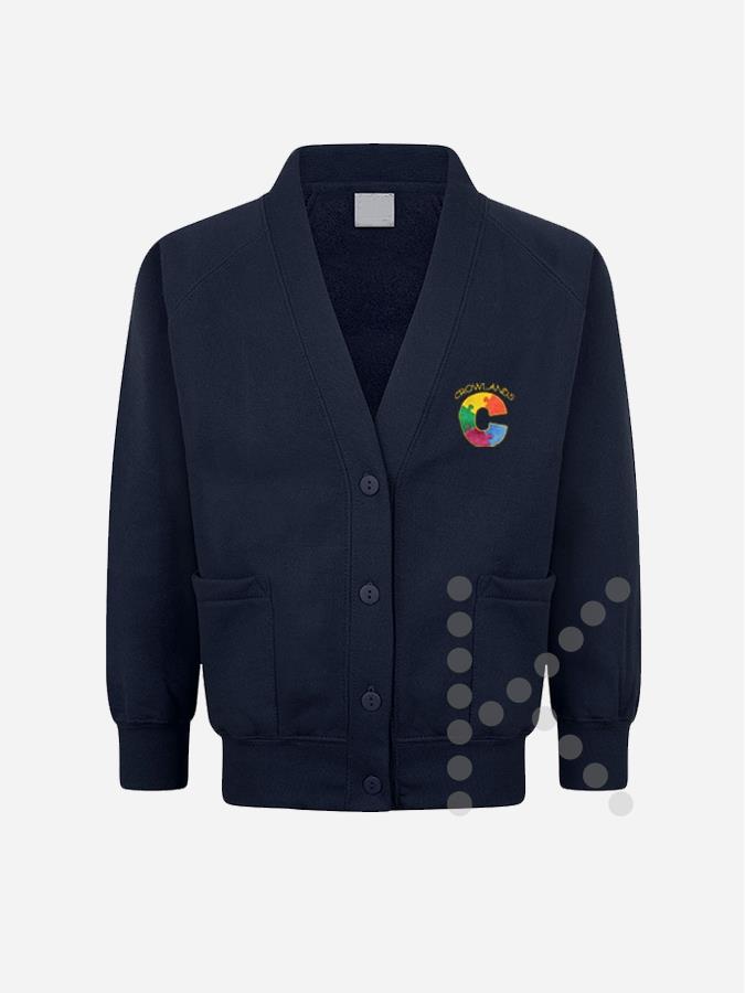 Official Crowlands Primary School sweatshirt cardigan.