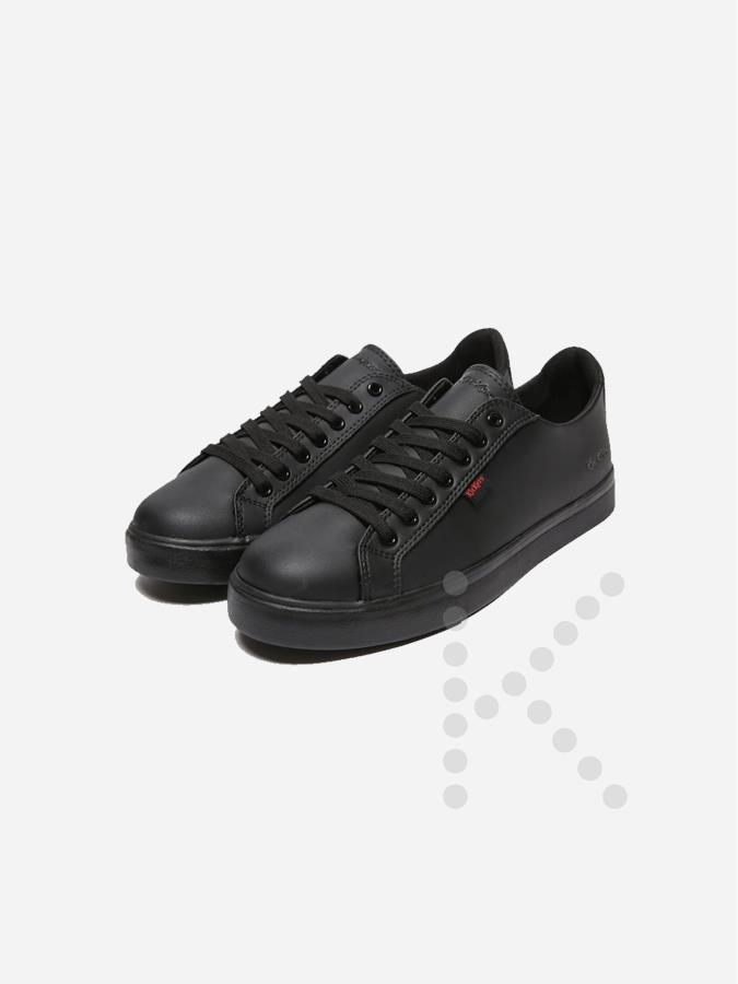 This slick, sneaker-inspired shoe in matte blackleather brings Kickers renowned robustness to a youth audience with a sporty bumper at the toe for long-lasting wear. Sporty construction allows for a comfortable fit, while the sturdy trademark soles are hardwearing. Hard-wearing quality leather uppers ensure all day comfort.